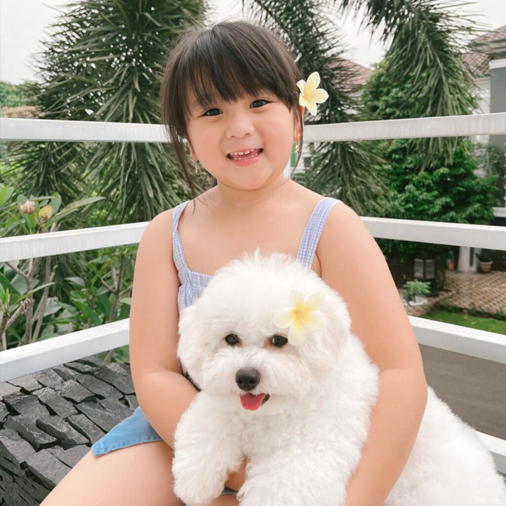 “Begitu pulang dari Tokyo langsung mencari tempat breeder Bichon yang baik di Jakarta. So grateful ketika sampai di sini banyak direkomendasikan Bichon Indonesia dan kebetulan anakan Ko Jeffry dan Ci Agatha dari Golden Sun juga sedang melahirkan 5 anak yang lucu lucu. Begitu berkunjung ke rumah mereka, jatuh hati dengan seorang anjing yang kalem dan akhirnya kunamai KOME (dlm bahasa jepang: beras). Kome menjadi kesayangan keluarga dan teman teman dekat, sangat penurut, baik, dan pintar. So happy to make him our family 💖.”